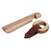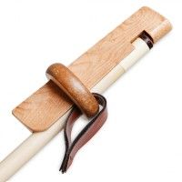 Инструмент, который значительно облегчает работу по смене наклейки на бильярдном кие, надежно фиксируя ее на время, пока засыхает клей. Вероятно, каждый игрок, самостоятельно менявший наклейку, сталкивался с тем, что, пока клей не схватился, наклейка может сместиться. Между тем, наклейку необходимо не просто приклеить, а максимально плотно прижать к стакану, чтобы в пространство между склеиваемыми поверхностями не попали микроскопические пузырьки воздуха, которые снизят прочность соединения.