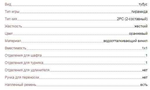 Компактный, надежный и удобный аксессуар для размещения одного двусоставного кия для русской пирамиды. Оснащен самыми необходимыми отделениями: для шафта, для турняка и для мелких бильярдных аксессуаров, которые всегда должны быть под рукой.