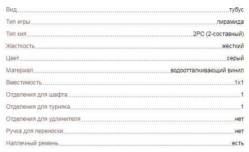 Компактный, надежный и удобный аксессуар для размещения одного двусоставного кия для русской пирамиды. Оснащен самыми необходимыми отделениями: для шафта, для турняка и для мелких бильярдных аксессуаров, которые всегда должны быть под рукой.